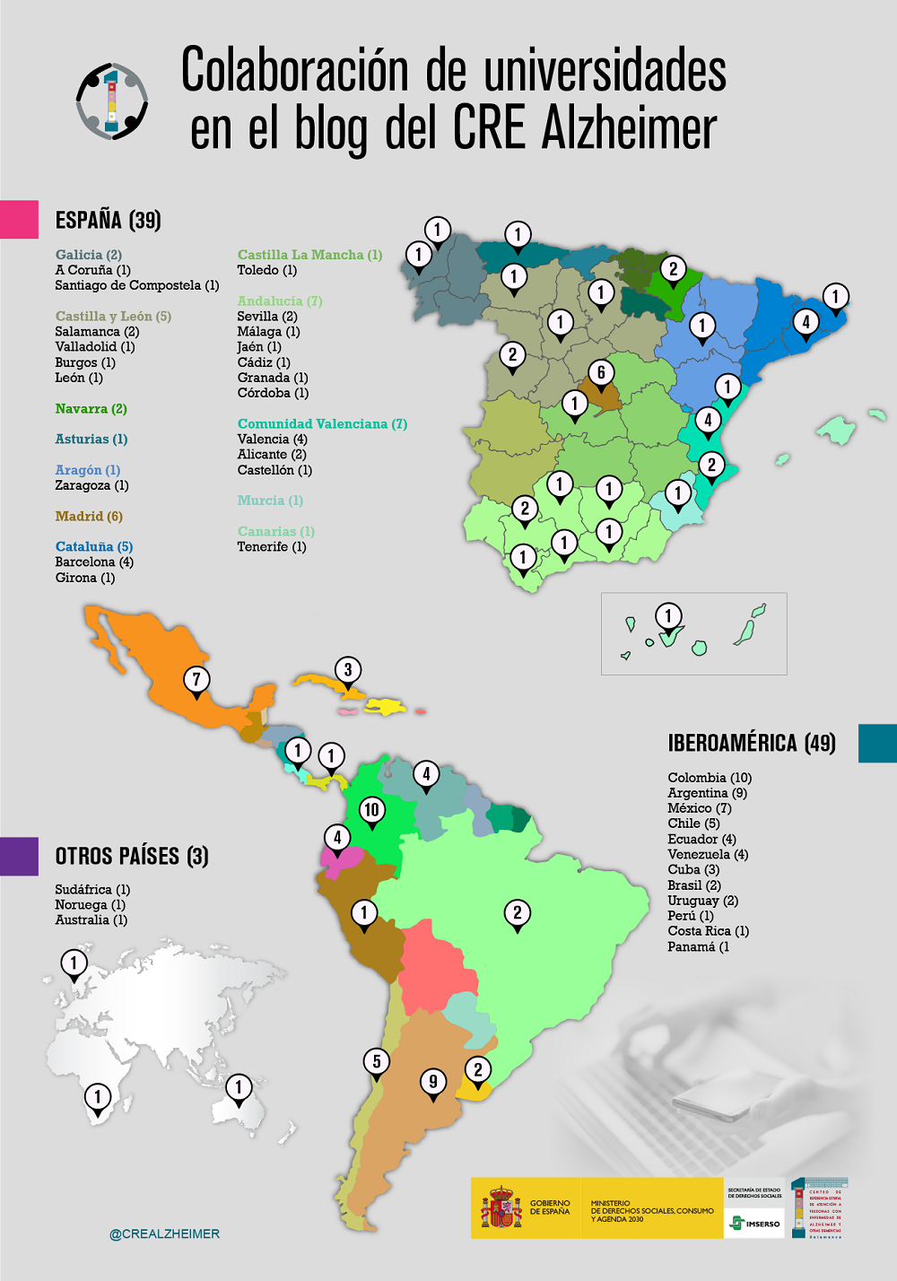 Investigadores de casi un centenar de universidades españolas y extranjeras han difundido sus investigaciones en el blog del CRE Alzheimer desde que empezó su actividad en 2013.