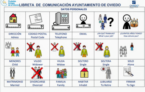 Debido a la gran aceptación por parte de los profesionales del Ayuntamiento, esta medida se ha ampliado y mejorado con sugerencias y aportaciones del propio personal, incorporando distintas hojas por temática y mejorado su diseño, realizando para ello un formato de fácil manejo con peana y espiral. Las libretas de comunicación, forman parte de los sistemas aumentativos y alternativos de comunicación (SAAC), productos de apoyo con el objetivo de compensar y facilitar las dificultades de comunicación y lenguaje de muchas personas.